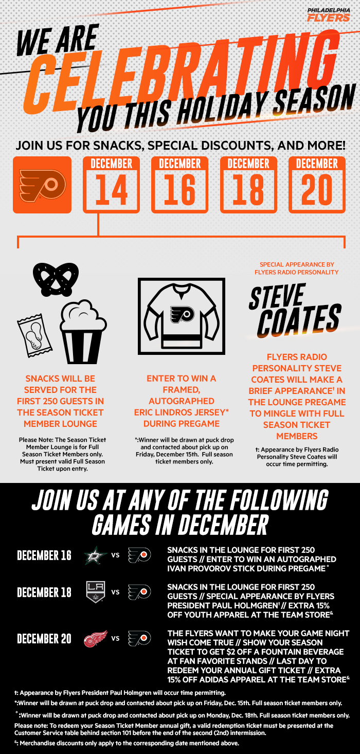 As the Client Communications Coordinator for the Philadelphia Flyers, my role acted cross-functionally between the Ticket Sales and Customer Service departments. I designed, created, and implemented email communications primarily to the Flyers Season Ticket Members. I also created small print collateral; facilitated relationships between vendors, creative services, ticket sales, and customer service; and managed the Flyers Season Ticket Member Facebook Page.